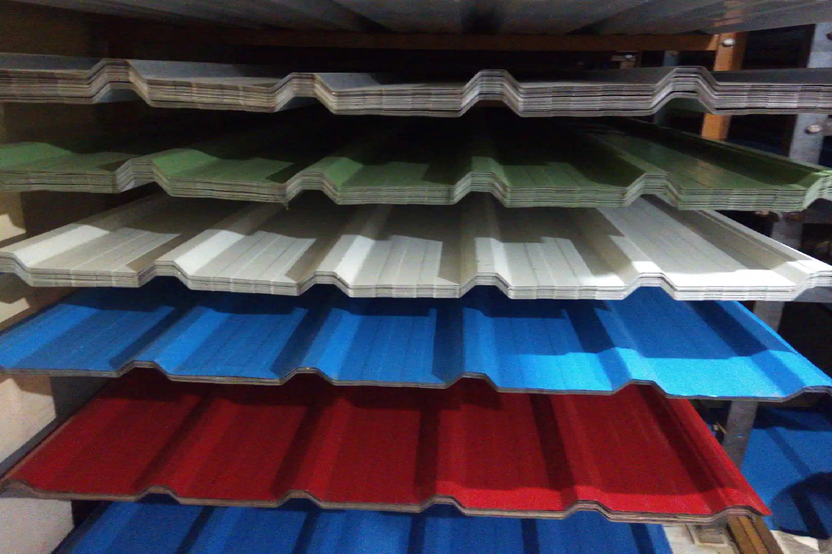 Color coated roofing sheets are processed plate made of color coated steel sheet after rock pressed and color bent into various corrugated forms.